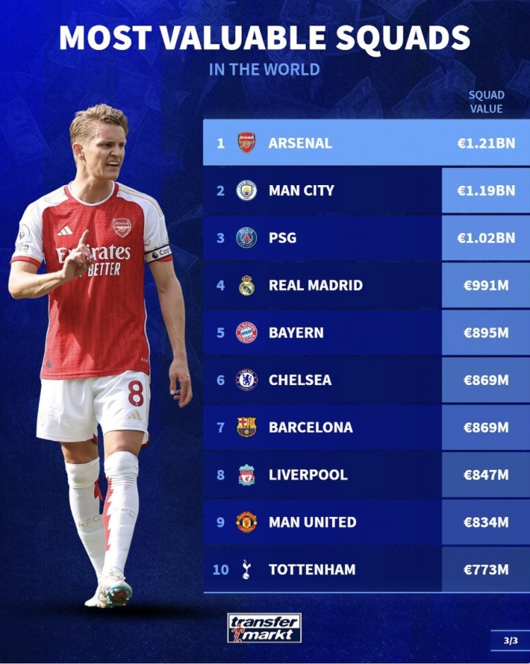全球俱乐部身价前十:阿森纳高居第一,曼城第二&皇马第四 7月22日讯,德转直播吧列出了全球俱乐部身价排行榜,以欧元作为计数单位。据榜单显示,阿森纳以12.1亿欧元的身价高居第一,曼城以11.9亿欧元紧随其后,而皇马则... 英超 admin 230 2023-07-22